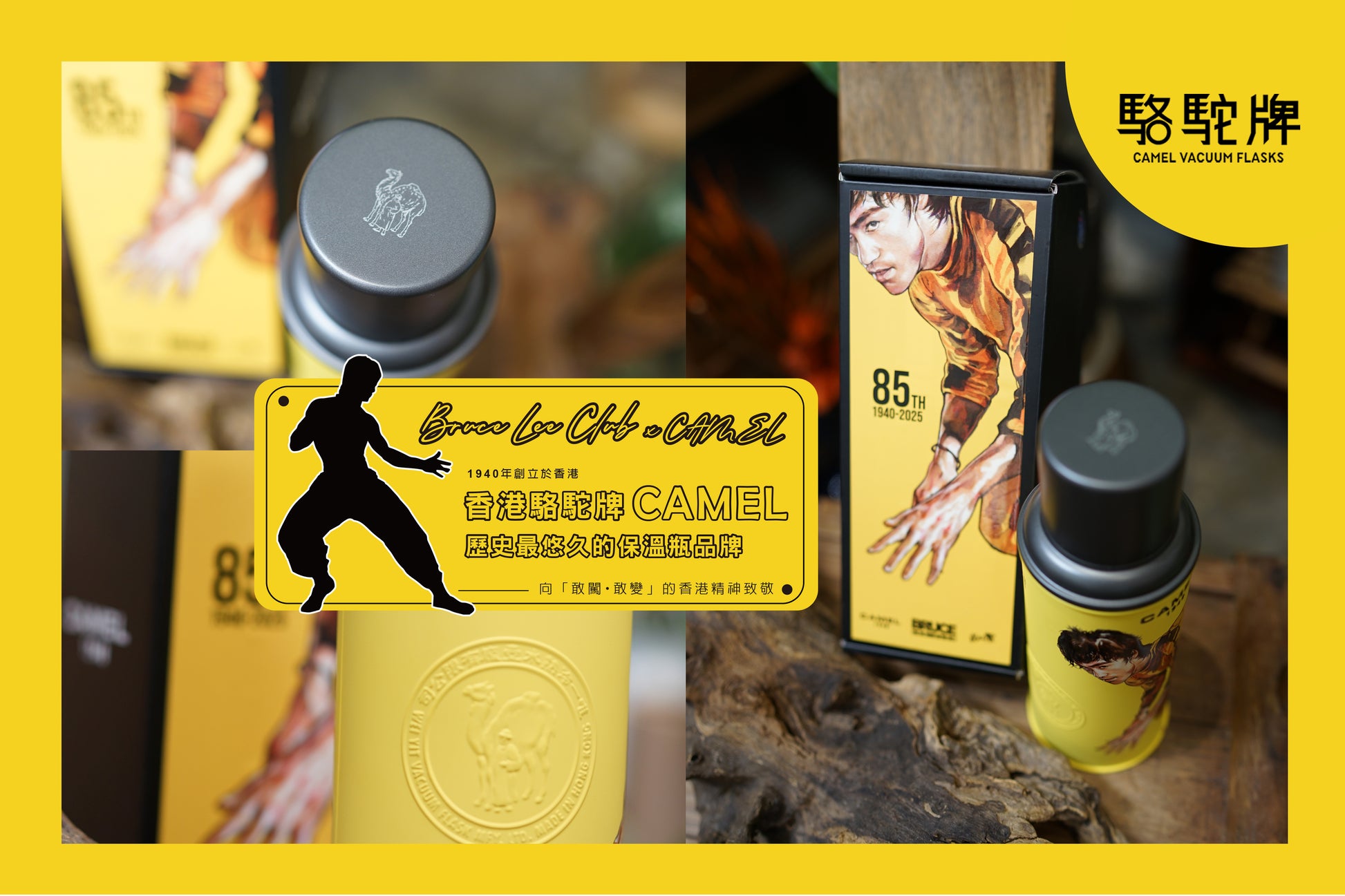 適逢 駱駝牌 85 周年,並為 紀念李小龍誕辰 85 週年,香港經典品牌【駱駝牌 Camel】誠意聯乘 Bruce Lee Club(李小龍會),推出極具收藏價值的保溫瓶作品。