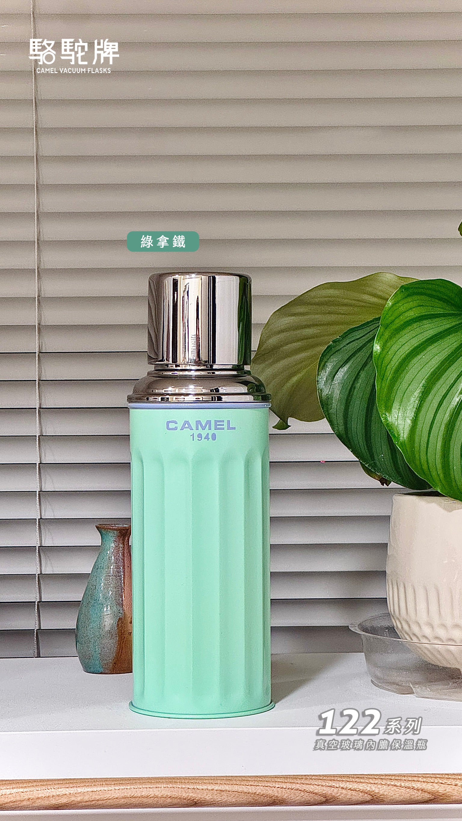 【香港CAMEL駱駝牌】122 系列真空玻璃內膽保溫瓶/ 450ml/綠拿鐵【買就送矽膠杯刷】